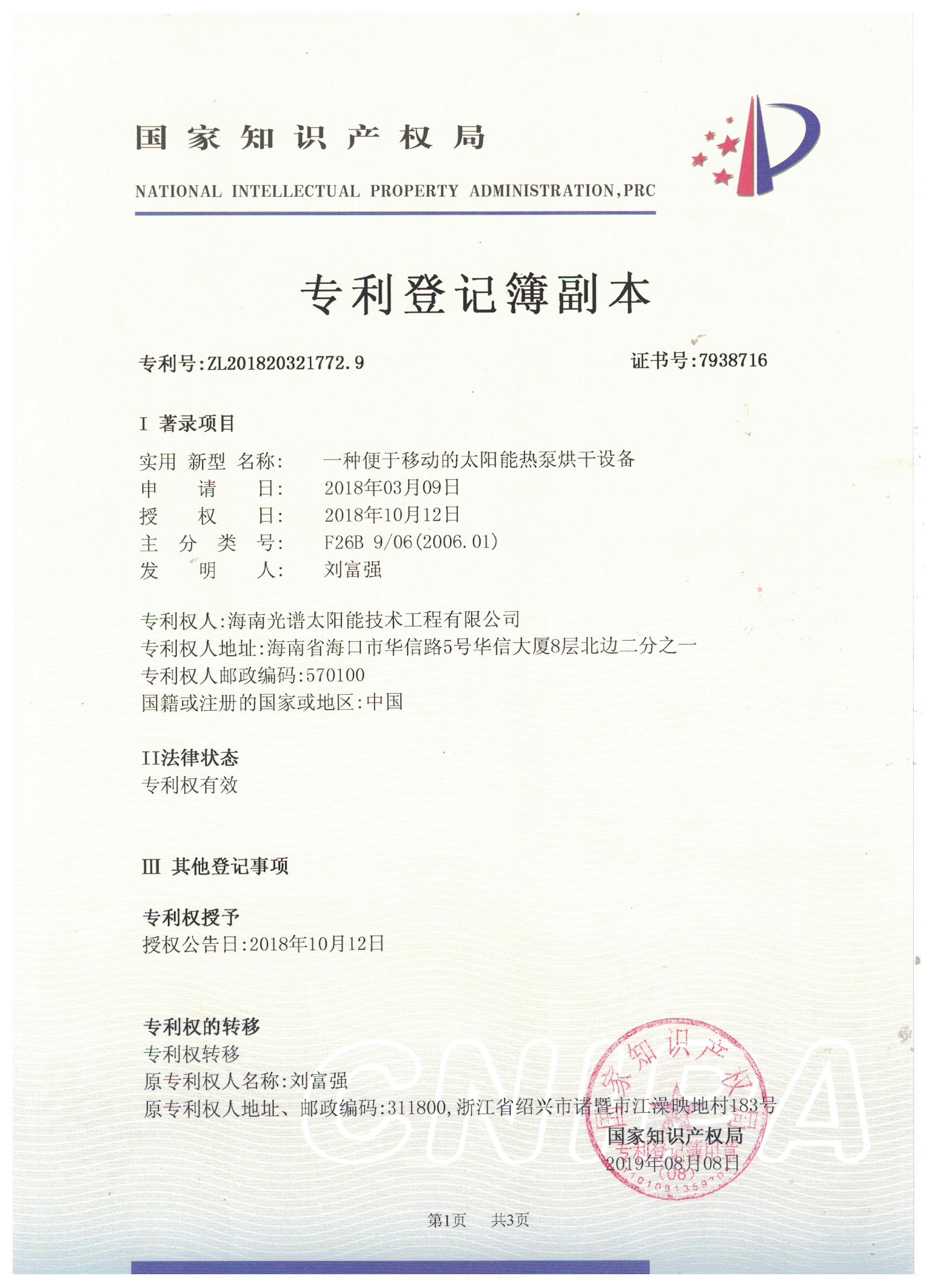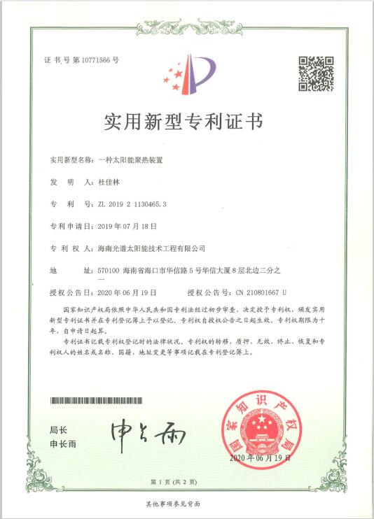 近日,我司申報的“一種太陽能熱泵蒸汽發(fā)生裝置”發(fā)明專利通過審查,獲得國家知識產(chǎn)權局授予的發(fā)明專利證書,授權專利號為“ZL201911126309.4”。 此次獲得國家頒發(fā)的專利證書,是對海南光譜公司創(chuàng)新實力的認可,代表著我司知識產(chǎn)權取得了突破性進展,為公司的持續(xù)性發(fā)展提供強有力的科技創(chuàng)...